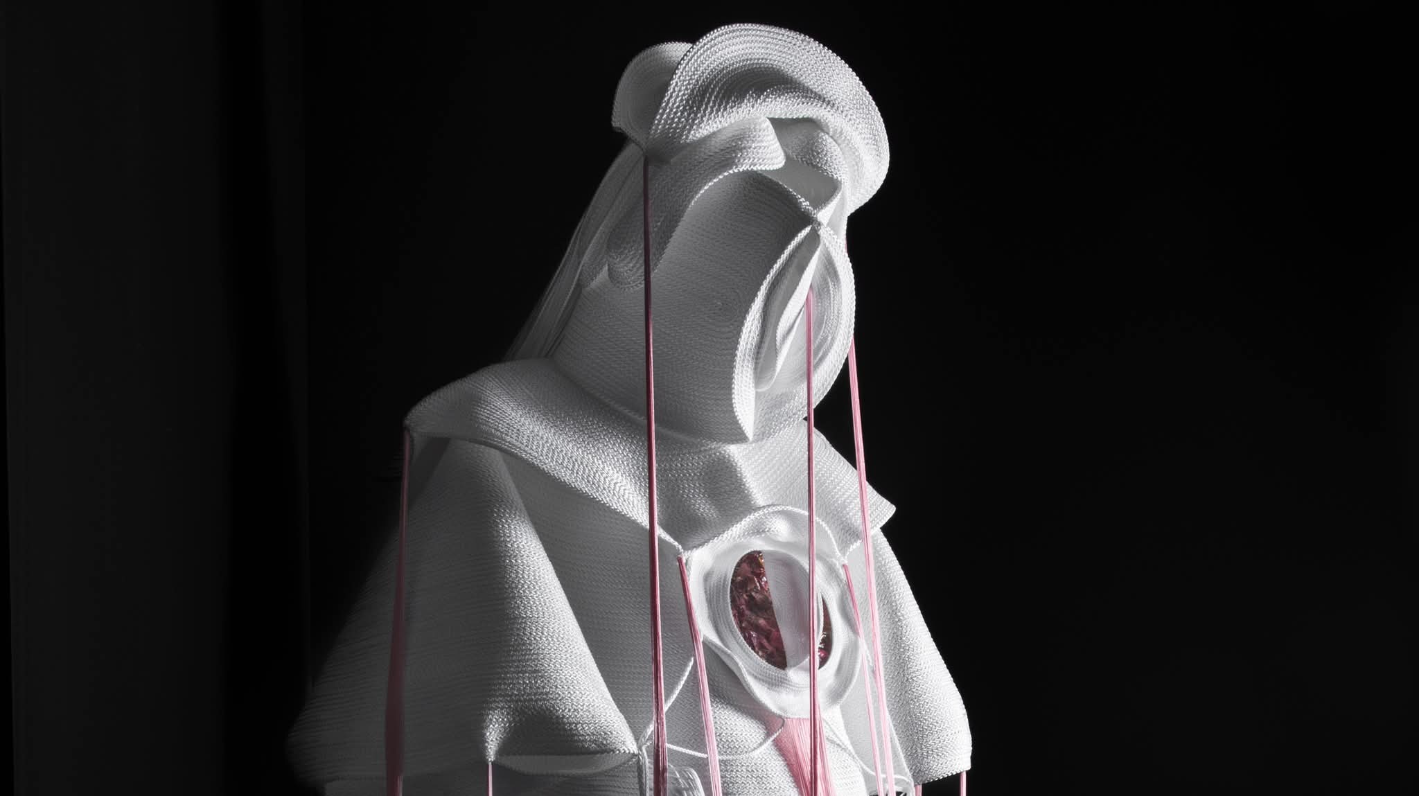 Jeanne Vicerial invite la danseuse Julia Cima à l’occasion du vernissage de l’exposition « In Silentio ». Le temps d’une performance Julia Cima se pare d’une des créations de Jeanne Vicerial, donnant vie à une étrange sculpture vestimentaire.