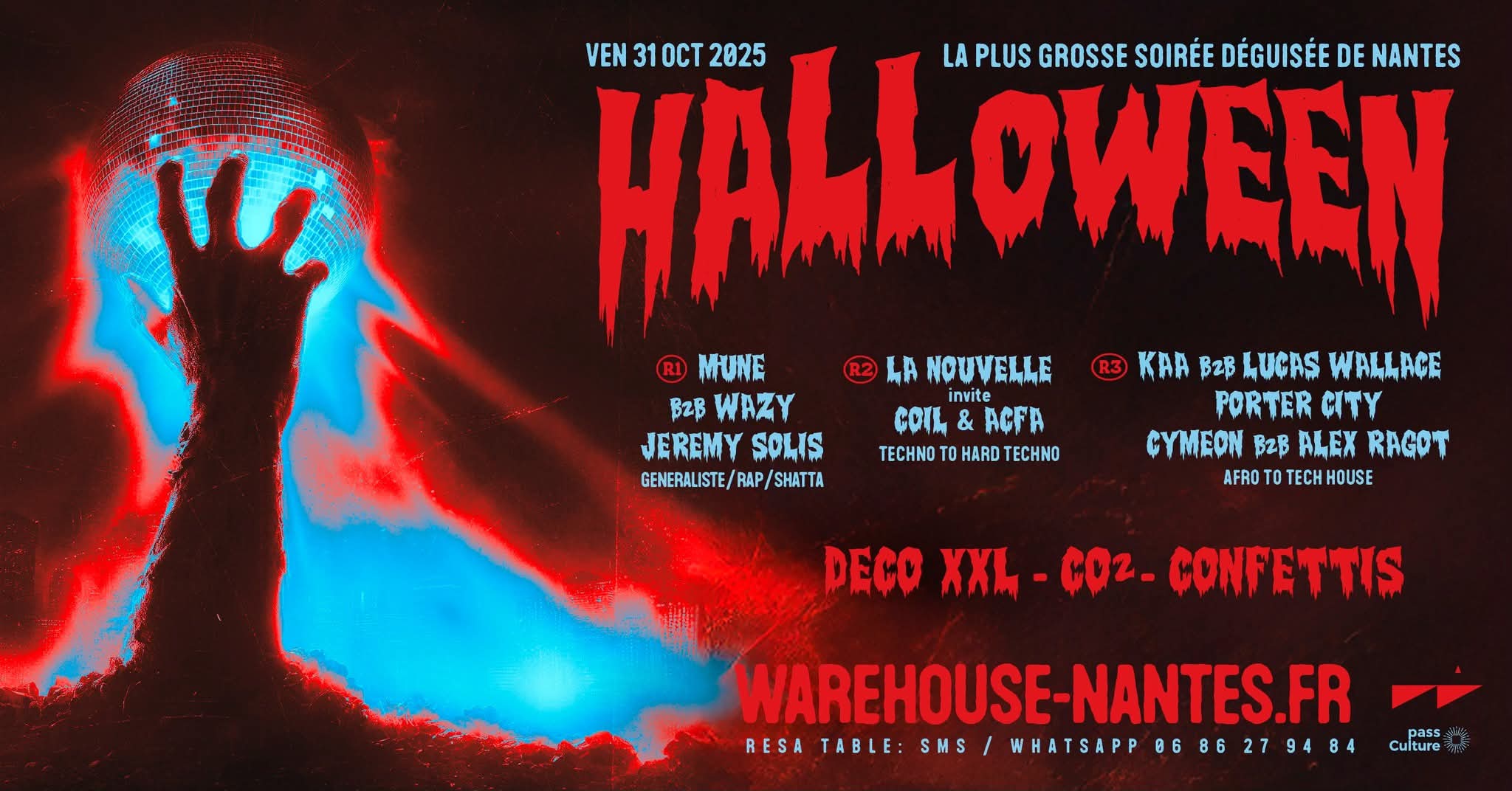 Halloween 2025 s’empare du Warehouse le vendredi 31 octobre pour la plus grosse soirée déguisée de Nantes.