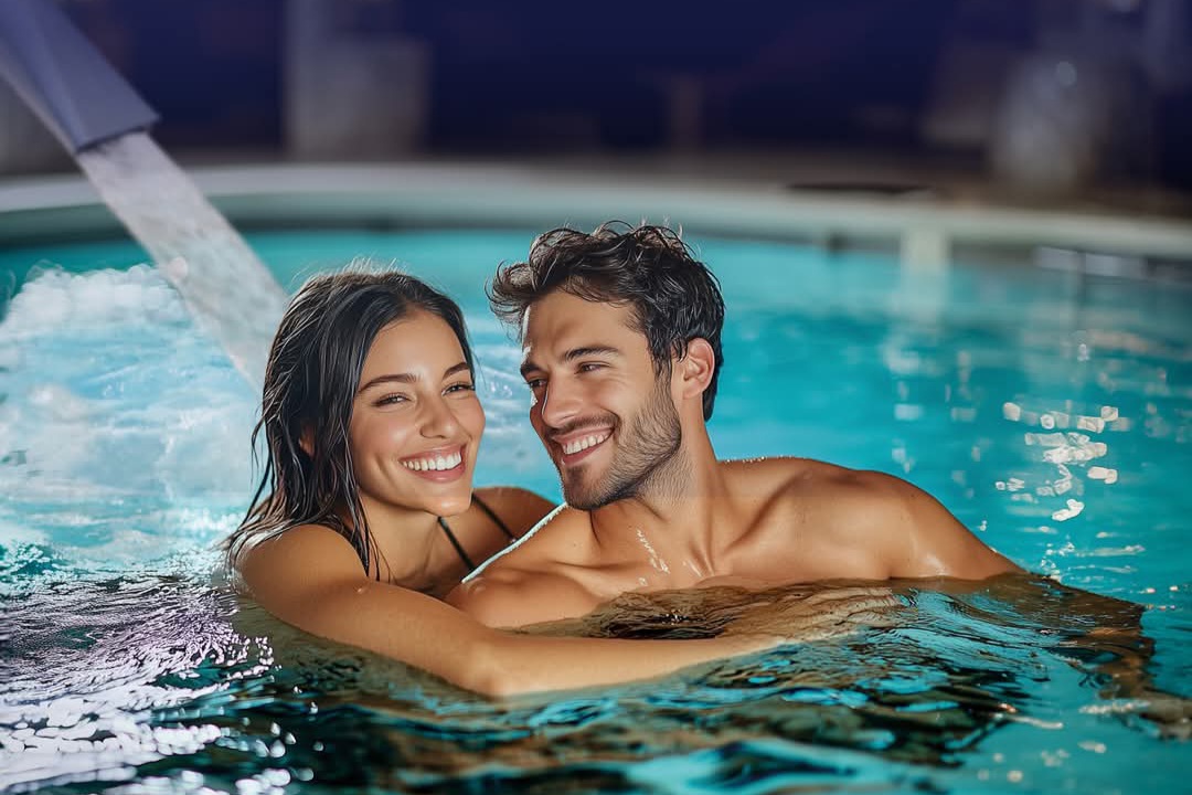 Profitez pleinement des bassins chauffés interieurs et exterieurs, de nos bains bouillonnants, hammams, saunas, … pour un pur moment de bien-être et de lâcher-prise.
