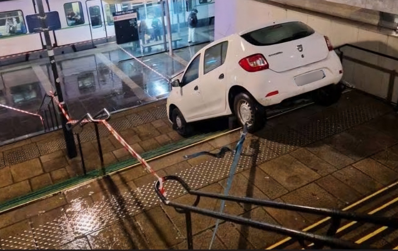 Heureusement, cet accident insolite n’a fait aucun blessé. La voiture, elle, est restée bloquée en travers des marches, incapable d’avancer ou de reculer.