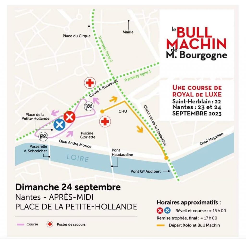 Le spectacle « Le Bull Machin et Mr Bourgogne » qui se tient ce week-end à Nantes et Saint Herblain touche à sa fin. Ce dimanche en effet, c’est le trophée final, la dernière course qui cloturera les festivités. Pour ne rien manquer voici le programme prevu ce dimanche. Pour en savoir plus si l’histoire du spectacle « Le Bull Machin et Mr Bourgogne » rendez-vous sur cette page.. Pour en savoir plus si l’histoire du spectacle « Le Bull Machin et Mr Bourgogne » rendez-vous sur cette page.