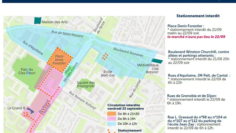 Même chose pour le stationnement et l’accès aux garages qui resteront interdits dans de nombreuses rues et places, notamment sur une partie du boulevard Churchill, de la rue d’Aquitaine ou encore sur la place Denis Forestier (où le marché n’aura pas lieu le 22 septembre, jour du spectacle).